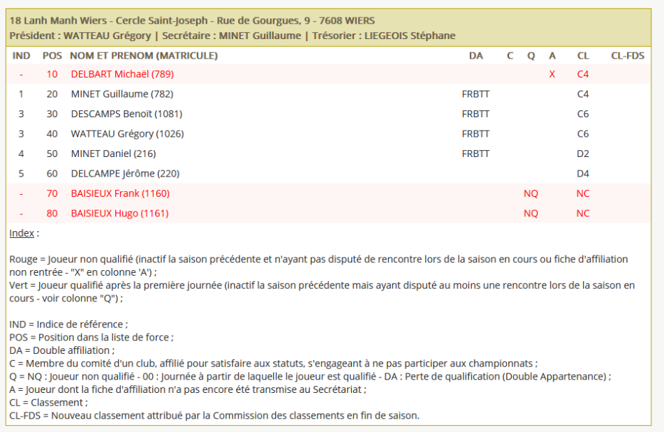 Liste des joueurs F.R.B.T.T. saison 2025-2026